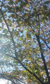 木々の葉を見上げる