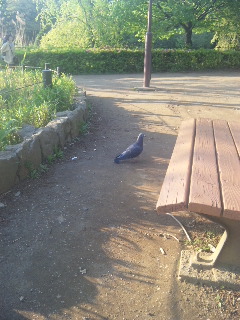 公園でじっとしたまま膨らんでいる一羽の鳩を見つけた