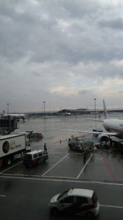 雨雲だったが滑走路はまだ濡れてはいなかった