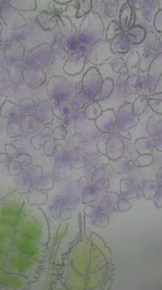こんどはスポンジに染ませた赤で花びらをたたいた