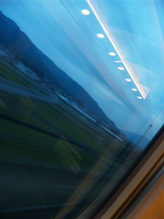 青い夕方町ぜんたいが霞んでいる