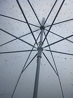 傘の中に縮こまる。