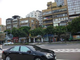 バスの車窓から街を見つめる