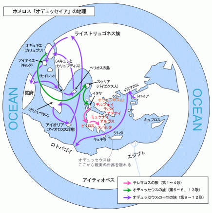 添付する。以下の図版は、英語wikipedia上の画像をトレースして手を加えたものである。イタケもスケリアも正しい場所は現在も明らかになっておらず、地図の厳密さは斟酌が必要だろう。