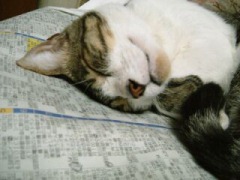我が輩 新聞紙のうえで眠るにゃご