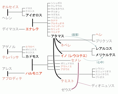 イノ(レウコテエ)について。イノの系図を示す。