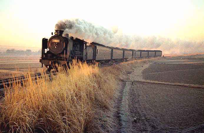 朝夕の通勤通学列車に、9600型SLのひく61系の7両が麦畑の中を、雑木林の脇を軽快に走っておりました。各停なのでバイクで追いかけて何度か撮影できるのですが、空いた道路を70Km/h位で飛ばさないと追いつけず、125ccの原付バイクではなかなか大変でした。では、もっと大型のバイクならとお思いでしょうが、撮影場所は、畑道端や林のはずれなので小形のバイクでないと駐車に手間取りかえって時間が掛かります。列車を追いかけての撮影は、予想外な危険が伴います。 2000.01.19