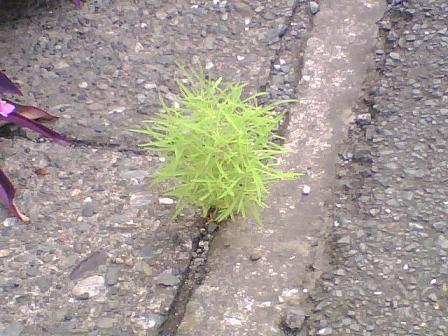 細い暗渠のコンクリートの隙間から