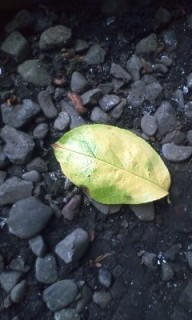 色鮮やかな黄緑色の落ち葉