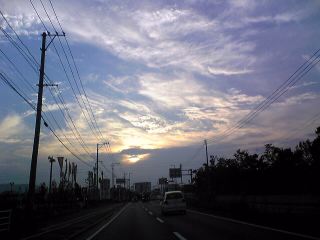 晴れ渡った空を見て、夕日を浴びる雲を見た。