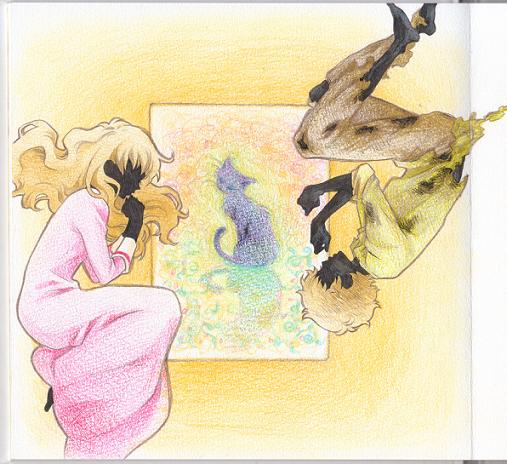 一枚の美しい黒猫の絵が残されていました。若者にとっては恋いこ