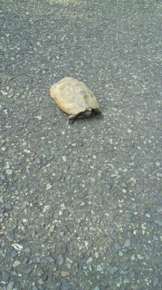 キャンプ場の近くを車で走っていたら20センチくらいの亀が道路をえっちらほっちらと横切っていました。