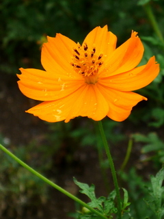 暗い花壇では朱いコスモスが