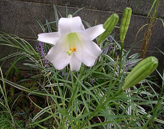 遅れ咲 ただ一輪の 白き花 朝の寒さに 凛と美し