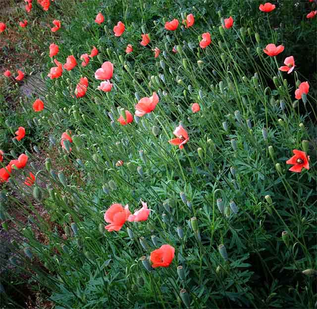 今朝近所の庭に赤い野草が繁茂しているので写真に撮り、帰宅してネットで調べたらどうやらひなげしのようである。