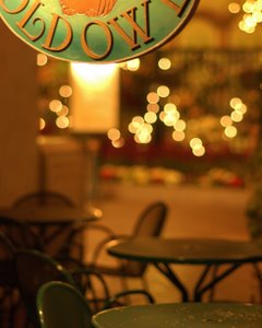 通りに面してテーブルが出され