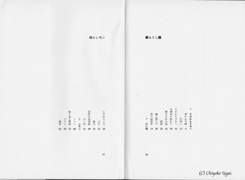 活版、ノンブル ノド元、もくじ巻末、解説、あとがき無し、詩だけの本です。(版画の挿絵2枚有。一枚は表紙のもの。)