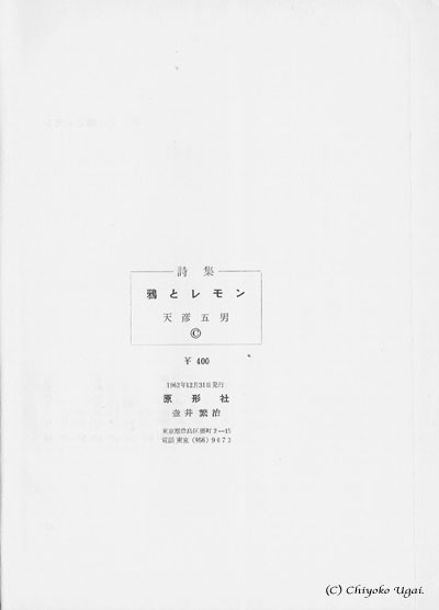 鴉とレモン 天彦五男詩集 (1962年) 届きました。