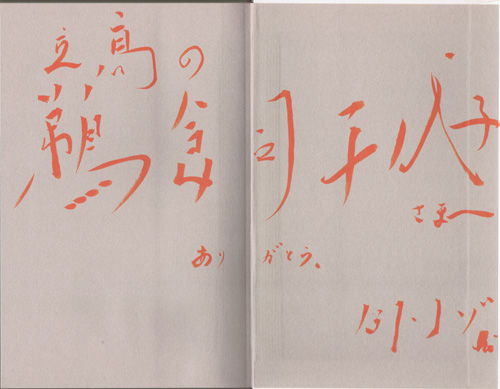 そんなこんなで、先日の書肆山田のトークセションに伺った時にいただいた吉増剛造さんのサインです。