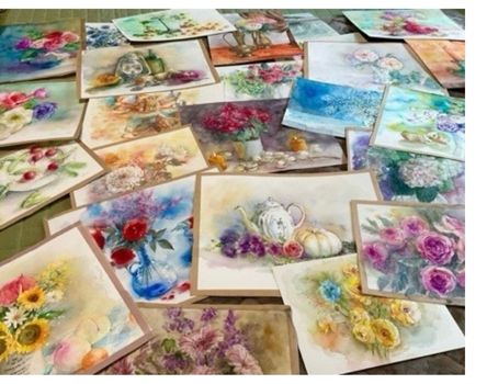 2年目になりました。ただ技術を学び習得しているだけで、自分の絵ではない感じ。淡々と練習曲をこなしてるような……色使いや描き方の癖はあるけども。にじみ、ぼかし、バックラン、塩、オックスゴール、マスキング、デカルコマニーその他の技法や寒色暖色補色、明暗、虚実をほんの少し一応使えるようになって、次はどうしようかな?という段階。今は一応絵的な綺麗さで整えるようにしてるけど、もっと違う何かを入れたい。複雑な微妙な感じ?そのへんつめていきたい。構図の勉強と、自分でモチーフを組む事もしていかないとなーと思います。今は先生の用意した写真を描いてるだけなので。