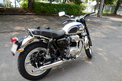 今度のバイクはカワサキW650。心地よい振動と町乗りではほとんどギアチェンジを必要としない太いトルクが気に入りました。高速でもそれなりに走れますが乗っている方が風圧で吹っ飛ばされそうです。でもマシン自体にはまだまだゆとりさえ感じられます。